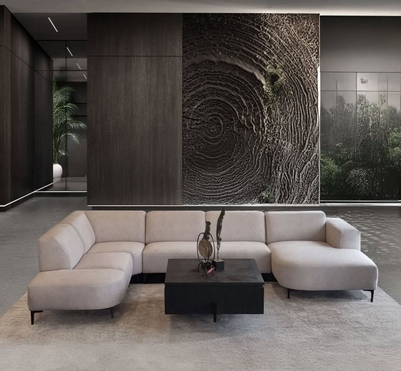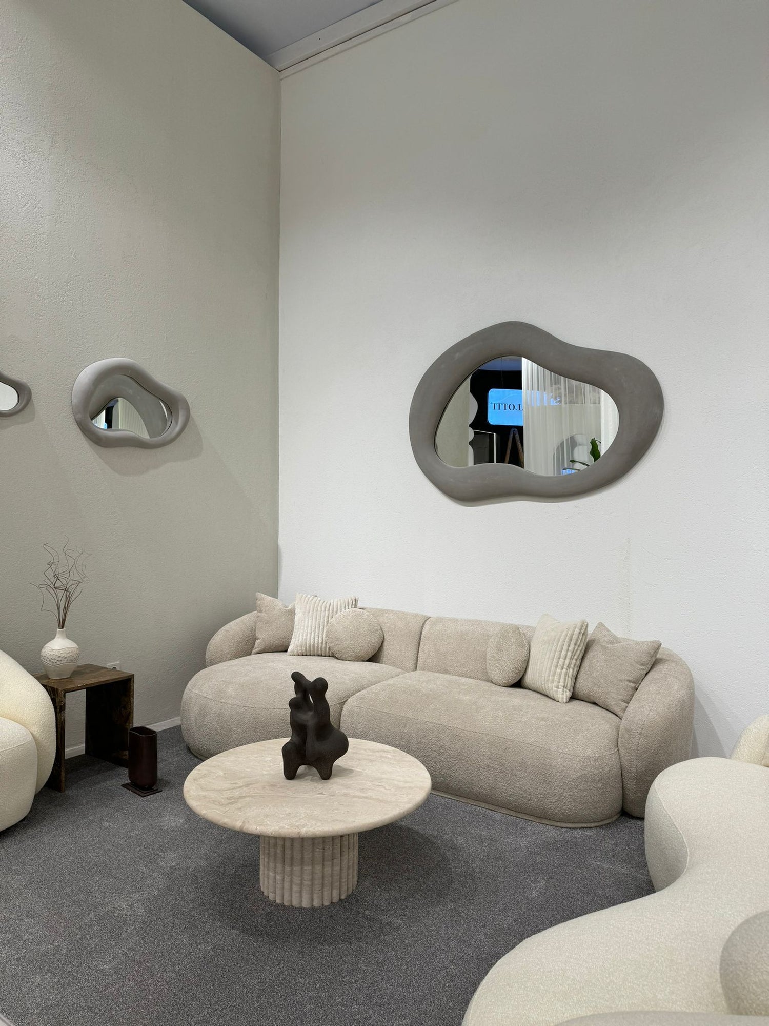 Dieses exklusive Designer Sofa bringt modernes Lounge-Feeling direkt in dein Zuhause. Mit seiner runden, organischen Form und dem eleganten Beige-Ton ist es ein echtes Statement-Piece für jedes Wohnzimmer.